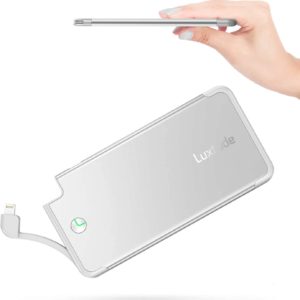Luxtude 5000mAh Portable Charger for iPhone, Ultra Slim Mfi Apple Certified External Battery Pack Built in Lightning Cable, Fast Charging Power Bank for iPhone 13/12/11 Pro/X/XR/XS Max/10/8/7/6S etc.